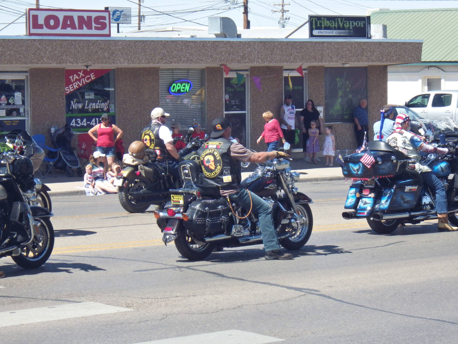 It was fun and the spirit of the occasoin was evident. Less enthusiastic than last year's parade. There hasn't been an Air Force jet fly over in many years. There were few floats. Mostly decorated cars, trucks, and motorcycles. There was no military presence except the JROTC kids; no bagpipes; no walking groups from businesses, schools, hobbies; no mini-bikes, go carts, or others who participated in the past.