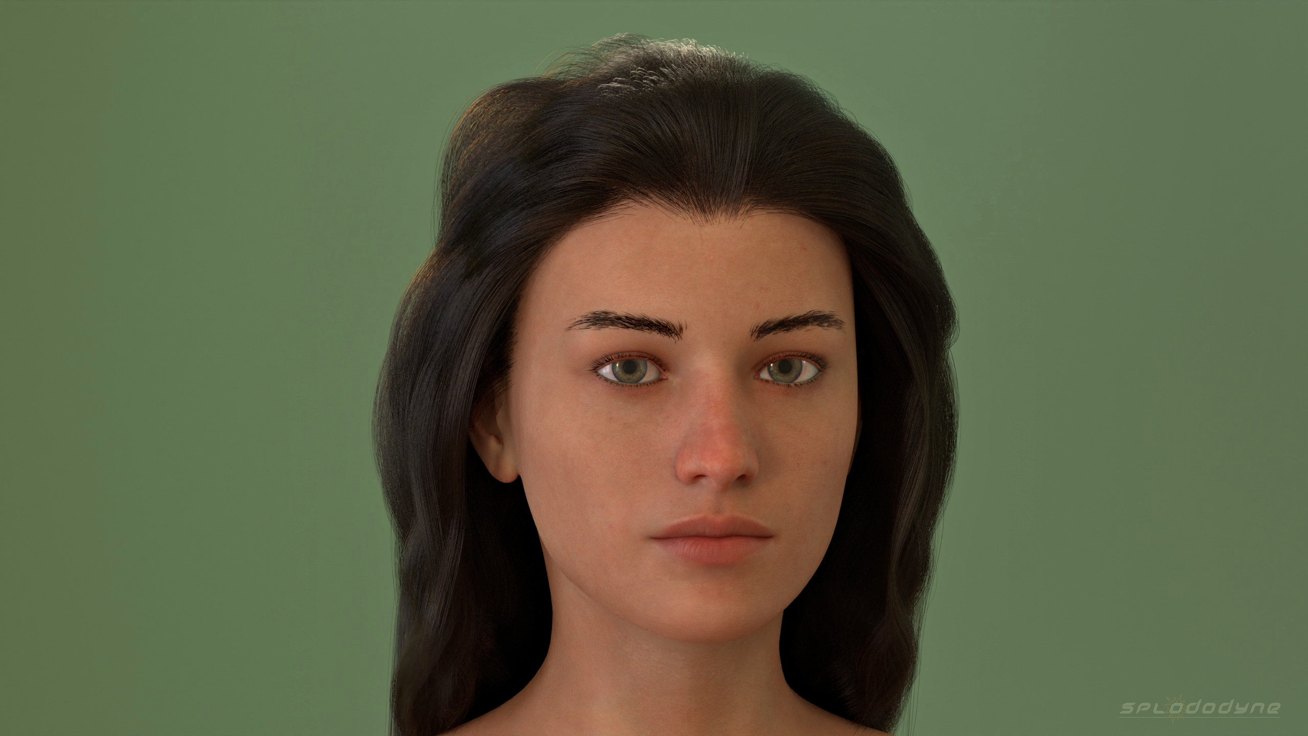 I did not use the Daz hair. The hair, eyebrows, and eyelashes are Blender particle hair. She has 96,000 hairs 0.1mm thick. That is realistic for a brunette European but I have thought of ways to look realistic while using fewer hairs.